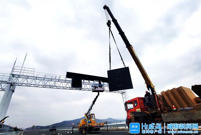 12月13日上午,在改擴建現場,雙向六車道的瀝青路面寬闊平整,道路標線已經全部施劃,清晰明了,道路兩側的護欄也已安裝到位。路面上,幾臺施工車輛和裝配工人們緊密配合,正在進行空中各類標識標牌的懸掛。雙島收費站,共設置了18個通道,其中上行進入高速有8個入口,下行進入市區共10個出口,工人們正在進行設備安裝調試工作。