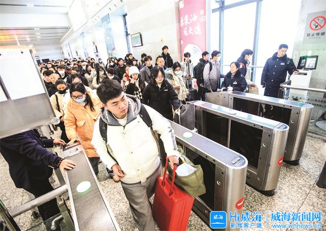 ??????當天9時30分,在威海站候車大廳,準備乘坐由威海發往蘭州西的G2684次列車的旅客正在排隊,逐一進站。“回家過年了,好開心!”老家蘭州的王子洋拖著兩個大行李箱高興地說,箱子里裝滿了給家人帶的禮物和威海特產,想把威海的好東西都帶回家,分享給親人和朋友。
