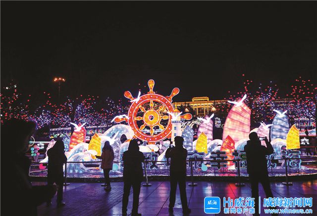 市民在市人民廣場賞花燈。