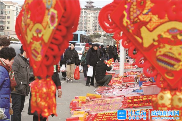 ??????集市上擺滿喜慶的春聯。