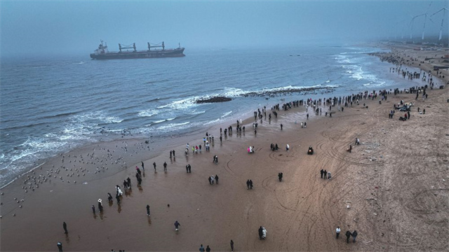 ??????浪花層疊,海鷗盤旋,相機快門聲不斷……新春假期,山東威海一處沙灘上,青年游客絡繹不絕,他們不只是來看海,更為觀賞一艘輪船。