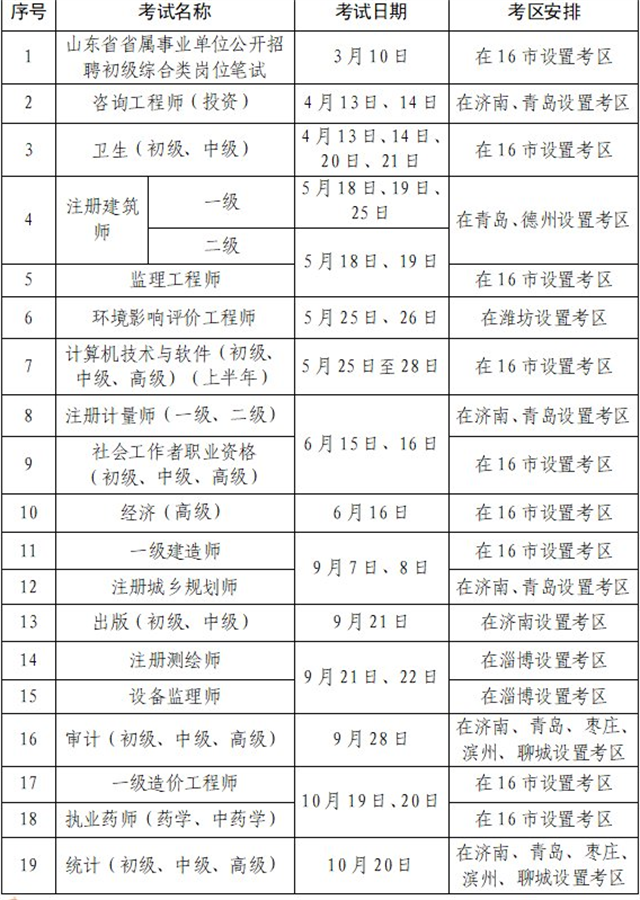 ??????2024年度山東省人事考試計劃及考區安排表
