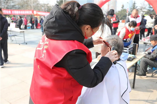 ??????上午九點,在世紀體育公園西側廣場,學雷鋒志愿服務大集熱鬧開張,活動現場,各志愿服務攤位干貨滿滿、各具特色。志愿服務區設置各類公益服務攤位,為居民群眾提供理發、磨刀、家用電器維修、中醫診療、肩頸推拿、口腔義診、視力保護、血壓檢測、助聽器保養、科普宣傳等多元化志愿服務。