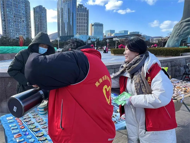 5日下午,威海市圖書館“學雷鋒City walk”志愿服務正式啟動。此次活動以傳播發揚雷鋒精神為目標,通過城市漫步的形式,讓志愿者們在行走與服務中,弘揚雷鋒精神,彰顯城市魅力。志愿者們到市區“大相框”“火炬八街”等熱門景點,向寒風中的商戶、環衛工等戶外工作者以及來威游客們送去“暖寶寶”及熱水,傳遞溫暖和關愛。