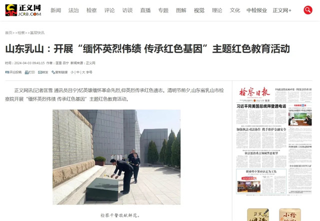 近日,正義網(wǎng)以《山東乳山:開展“緬懷英烈偉績 傳承紅色基因”主題紅色教育活動》為題,聚焦威海乳山在清明節(jié)開展紅色教育活動。