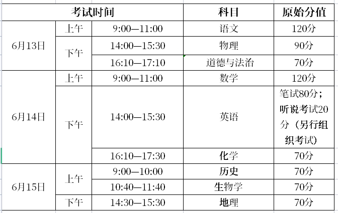 6月16日至20日,我市將完成評(píng)卷、數(shù)據(jù)檢查及統(tǒng)計(jì)工作,6月21日公布成績(jī)。