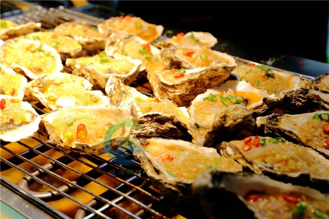 循著美食誘人的香味兒來到小吃攤兒前,來份兒個大飽滿,還點綴了蔥花、紅辣椒的蒜蓉烤生蠔,在唇齒間感受濃郁而不沖口的蒜蓉香氣將肥嫩多汁的生蠔緊緊包裹,一口就讓人直呼:“好吃得停不下來!”