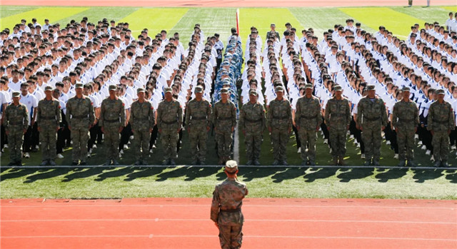 五星紅旗冉冉升起,師生們滿懷豪情共唱國(guó)歌,嘹亮的歌聲響徹校園。隨后,軍事訓(xùn)練考核正式開(kāi)始。身著迷彩服的新生們跟隨教官指令,行軍、臥倒、翻滾、沖鋒……身手利落,目光堅(jiān)毅;方隊(duì)成員們邁著整齊劃一的步伐,齊步、正步、立定……身姿挺拔,步伐穩(wěn)健。之后,全場(chǎng)齊唱《強(qiáng)軍戰(zhàn)歌》,充分展現(xiàn)了學(xué)生們朝氣蓬勃、奮勇?tīng)?zhēng)先的精神風(fēng)貌。