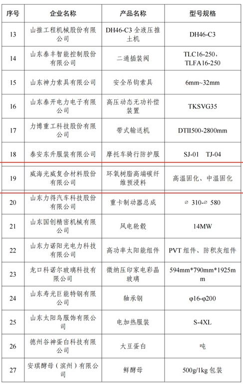 9月23日,山東省工信廳公示了2024年“山東制造·齊魯精品”名單,其中,威海光威復(fù)合材料股份有限公司、山東亙?cè)虏牧瞎煞萦邢薰尽⑵至殖缮剑ㄉ綎|)輪胎有限公司、威海天力電源科技有限公司4家企業(yè)的產(chǎn)品上榜。
