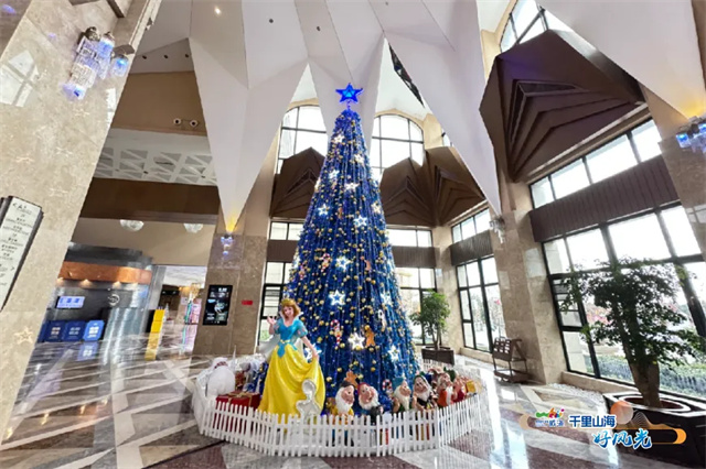循著風的印跡步入酒店,冰雪主題的各色裝飾已準備就緒,圣誕樹、小矮人、神秘小屋……在這樣步步夢幻的冰雪空間,仿佛住進了童話世界。