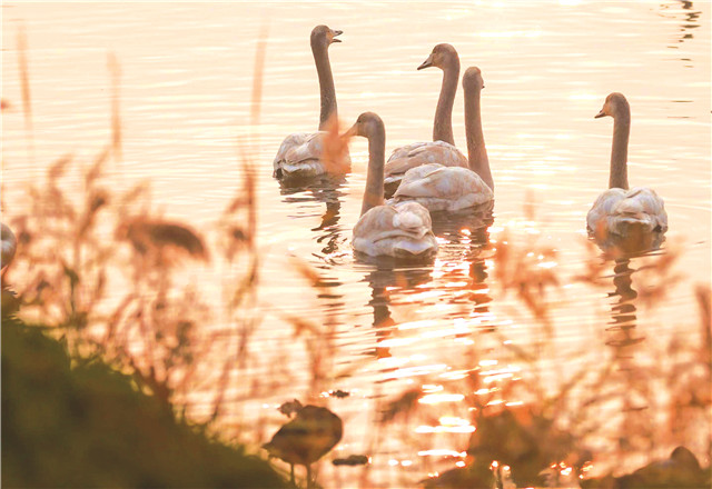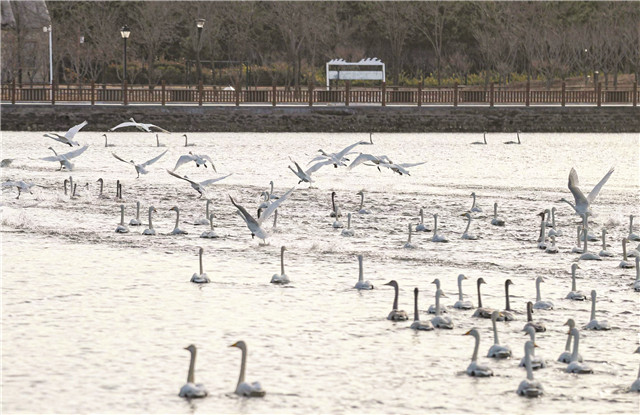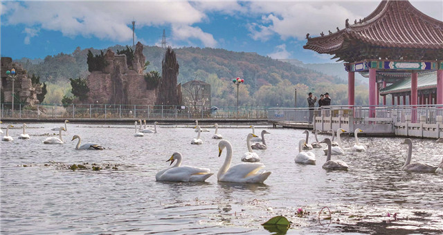 隆霞湖上坐落著亭臺樓閣,蘆葦飄搖,自成靚麗的風景。這里水清波柔、水質良好,湖內富足的藻類,每年吸引著數百只天鵝來此度假覓食。