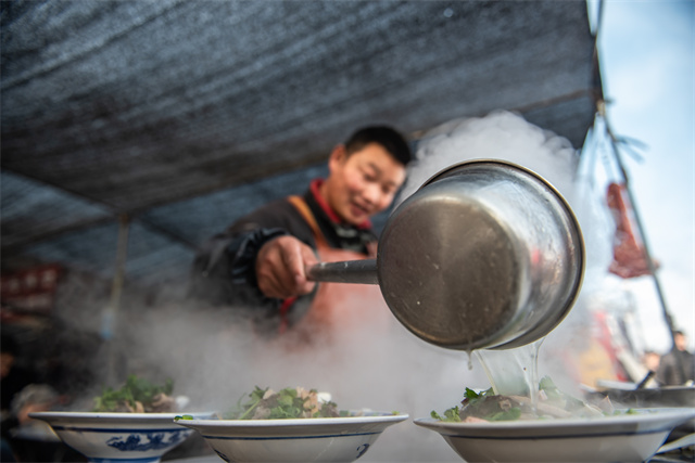 過大年,趕大集。若想要熱鬧煙火氣,必須穿上棉襖去大集上擠一擠。老人們喜歡在集上買一筐冰冰涼的砂糖橘,再稱一兜五顏六色的糖,買一些鮮活蹦跶的魚蝦,款待新年歸來的兒女孫侄。年輕人則多愛尋味,愛大集上蒸騰著熱氣的奶白色羊湯,愛咬一口嘎嘣脆的糖葫蘆,也愛刷過醬汁的炸串和烤得滋滋冒油的雞腿。