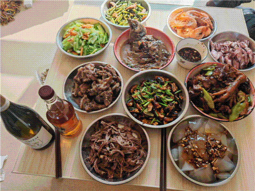 ????????到了晚上,全家人圍坐在一起,品嘗豐盛的年夜飯。在威海,一直有著“無魚不成宴”的傳統(tǒng)。魚與“余”諧音,寓意著生活富足、年年有余。餐桌上的禮儀與講究也別有一番趣味。比如,若不小心打碎了碗,老威海人一定會趕忙說一句“歲歲平安”,巧妙化解小小的尷尬,也讓這份吉祥的祝福在空氣中彌漫開來。年夜飯后,全家齊動手包餃子的環(huán)節(jié)更是充滿了歡樂與期待。人們會將硬幣或紅棗包進(jìn)餃子里,據(jù)說吃到的人,新的一年便會鴻運當(dāng)頭,萬事順?biāo)臁?