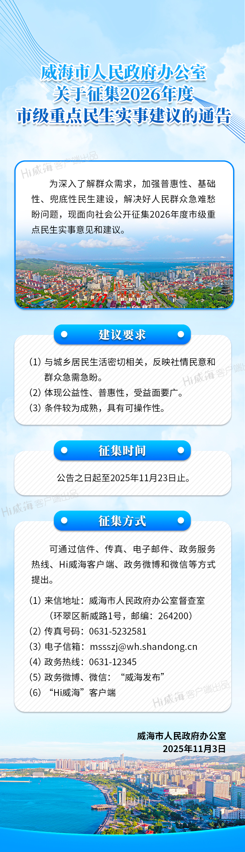 通告!威海公開征集2026年度市級重點民生實事建議