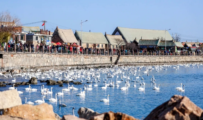????????榮成是大天鵝主要的棲息地,尤以位于成山鎮的天鵝湖、俚島鎮的煙墩角村、港西鎮的那香海最為集中,此外櫻花湖、隆霞湖、愛蓮灣等地均有分布。