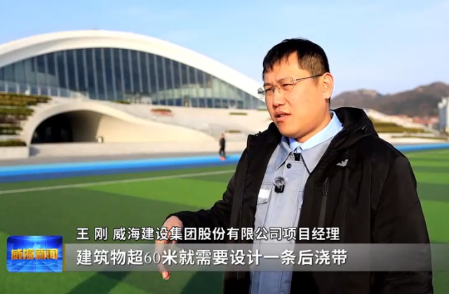 ????????威海建設集團股份有限公司項目經理王剛說,如果是通常施工,建筑物超60米就需要設計一條后澆帶,它需要進入施工兩個月之后才允許澆筑,這樣的話在工期方面就沒法滿足了,而且后澆帶滲水隱患特別大。所以他們當時多次論證采用“跳倉法”施工。