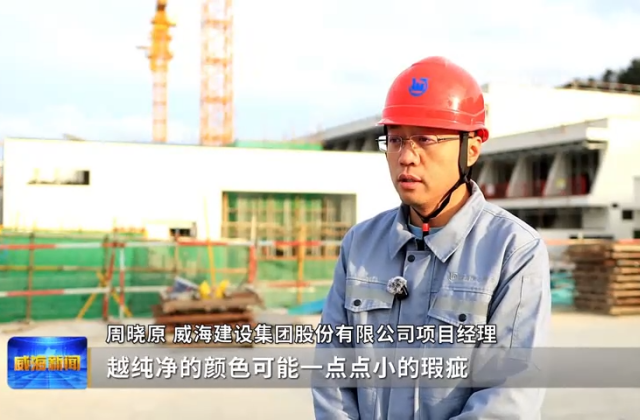 ????????威海建設集團股份有限公司項目經理周曉原說,普通的清水混凝土難度已經很高了,但是作為白色,更加難上加難,因為它對原材料的純度,配比的精度、澆筑的溫度和振搗工藝的標準都非常高,越純凈的顏色可能一點點小的瑕疵,它就可以無限放大。