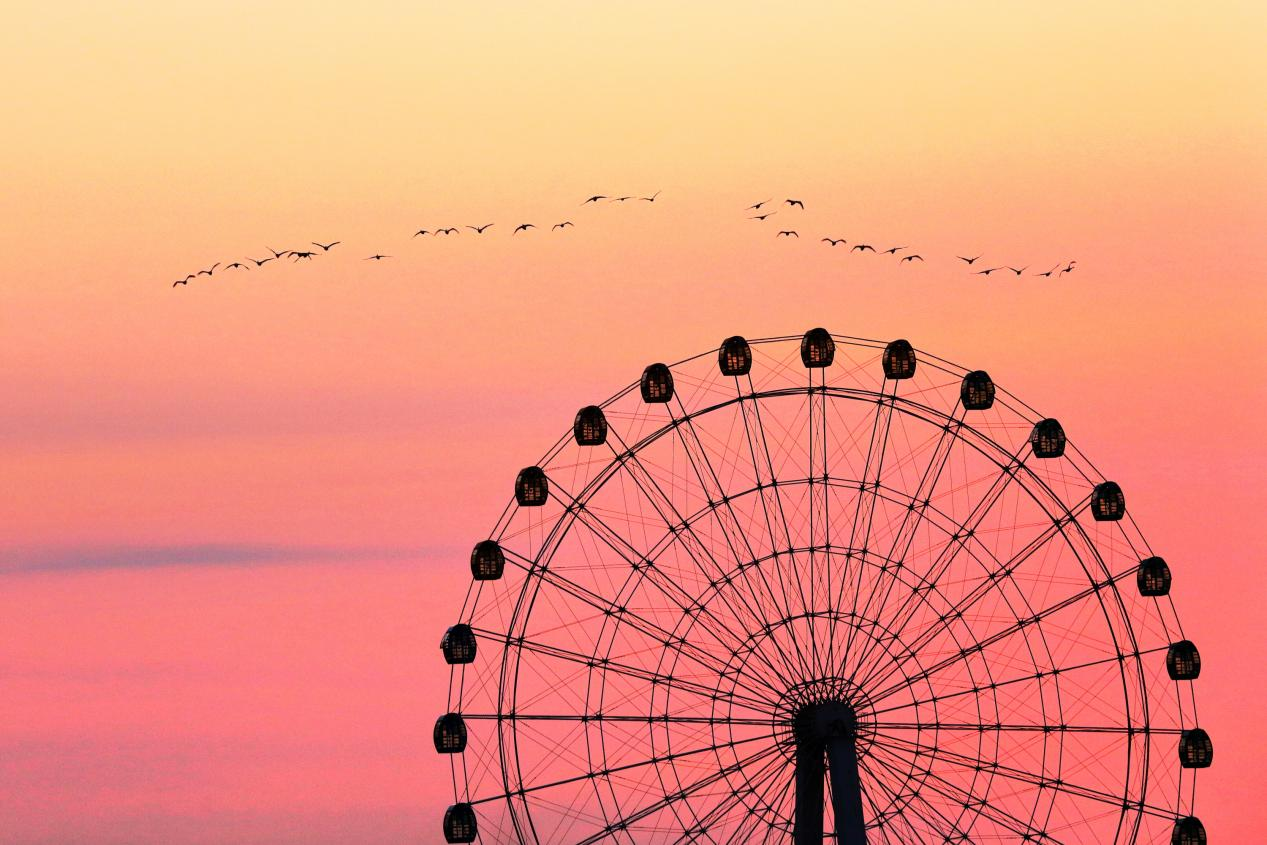 ????????“為了看這一幕,我們特意提前半小時(shí)就到了觀景點(diǎn)。”來(lái)自濟(jì)南的游客李偉麗一邊用手機(jī)記錄美景,一邊說(shuō),“湖面像撒了層碎金,天鵝們姿態(tài)優(yōu)雅,遠(yuǎn)處的摩天輪帶著霞光,真是肉眼可見(jiàn)的美,完全不需要濾鏡?!?/p>