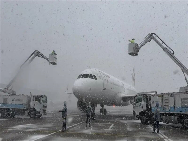 威海機場于降雪前組織召開部署會及調(diào)度會,對各項準備工作進行詳細部署,對除冰雪車輛、圍界設(shè)備等室外裝置進行全面檢測,確保所有設(shè)備狀態(tài)良好、物資儲備充足。截至發(fā)稿時,機場已完成跑道、滑行道、機坪除冰作業(yè)1次,開展航空器除冰8架次。10日預(yù)計保障航班52架次,已完成20架次,航班放行正常率保持100%。在確保運行高效的同時,機場同步做好暖心服務(wù):配備毛毯、姜湯等御寒物資,并提前聯(lián)系交通部門做好旅客疏散準備,全力營造溫馨舒適的候機環(huán)境。