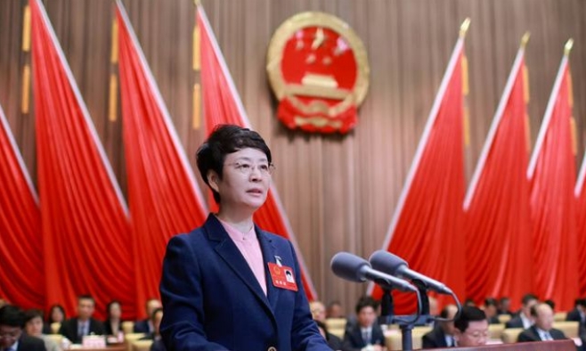 ????????在熱烈的掌聲中,孔凡萍向大會(huì)作《政府工作報(bào)告》。