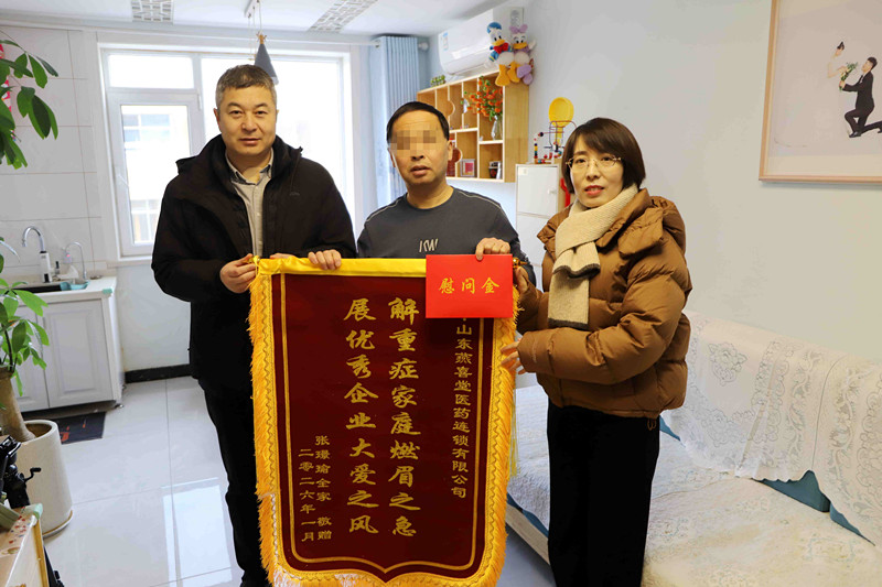 ????????1月20日,大寒節氣,天氣寒冷,但威海市白血病患者的心里卻是熱乎乎的。當天,威海市民政局、市社會救助服務中心、市慈善總會相關負責人,以及山東燕喜堂醫藥連鎖有限公司(以下簡稱燕喜堂)副總經理宋文新,燕喜堂董事辦負責人白潔,走訪我市白血病患者,向首批8名白血病患者發放救助金,送上了寒冬里的溫暖與關愛。