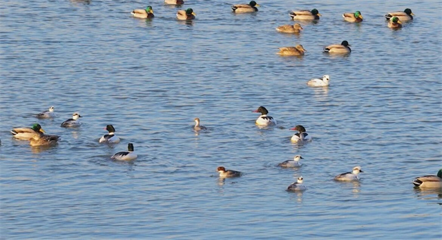 ????????近日,在位于南海新區的威海五壘島灣國家濕地公園,攝影愛好者拍攝到國家一級保護動物世界極危物種青頭潛鴨、國家二級保護動物斑頭秋沙鴨在此棲息覓食的身影。這是南海新區首次發現這兩種鳥兒,這群對生態環境極為挑剔的“生態檢驗師”,以靈動身姿,為南海新區優良生態寫下生動注腳。