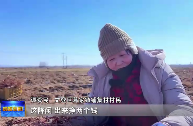 ????????文登區葛家鎮鋪集村村民譚愛民說,離家挺近的,有一二里地,這陣閑,出來掙點錢。