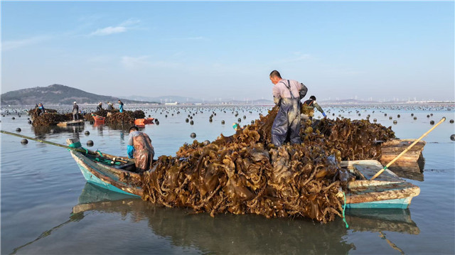 震撼!威海榮成海帶收割第一鐮,場面太壯觀