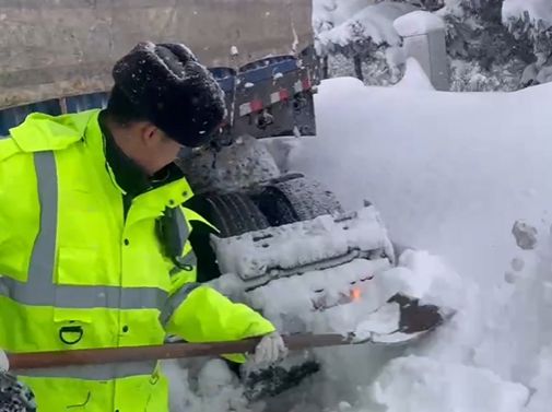 Hi視頻丨雪中“刨”出兩輛大車!威海交警提醒:天冷路滑,注意安全
