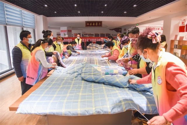 石島:一針一線皆是情,愛(ài)心棉被暖人心