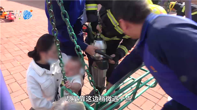 Hi視頻丨男嬰腿卡秋千,消防緊急救援