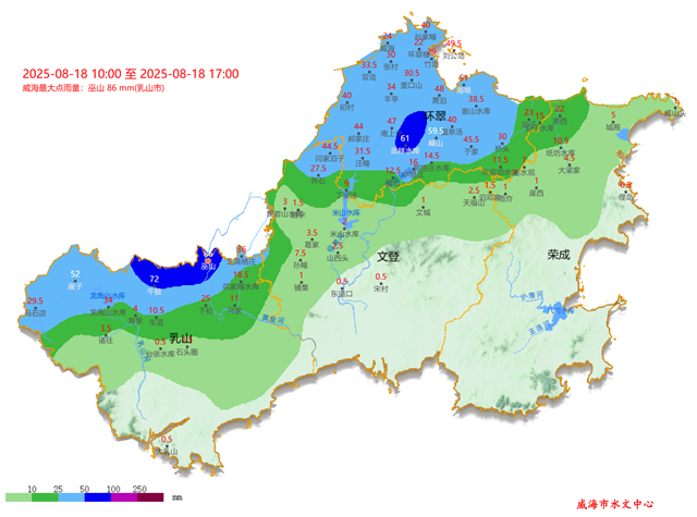 最新雨情:7月31日14時至8月1日15時,威海平均降水量14.3毫米