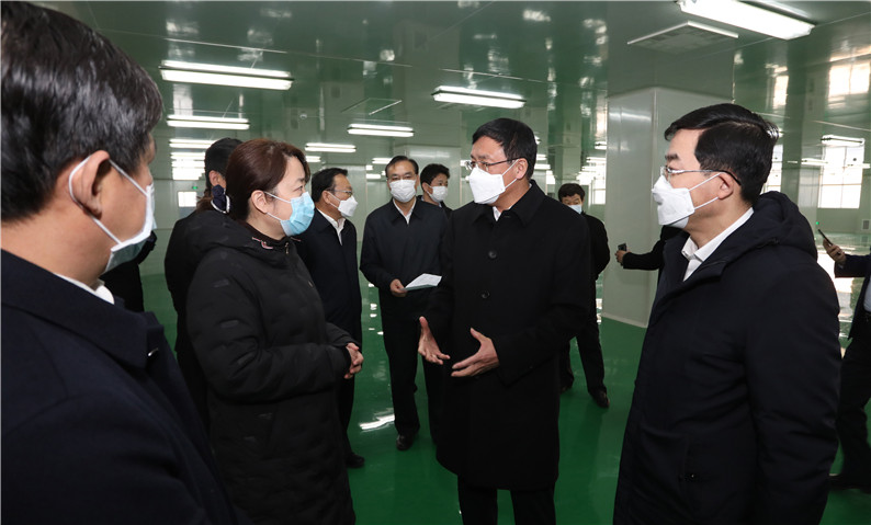 王魯明現場督導疫情防控物資生產情況時強調:整合資源 擴大產能 高效率生產急需的醫用防護物資