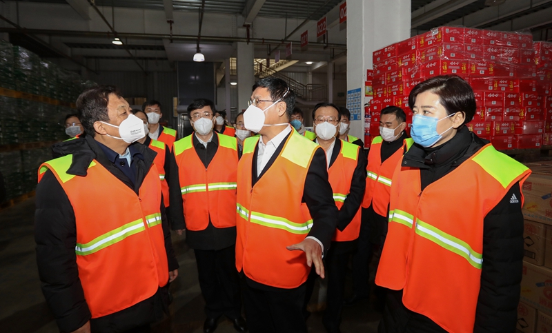 王魯明現(xiàn)場(chǎng)調(diào)研防控應(yīng)急物資生產(chǎn)儲(chǔ)備和市場(chǎng)供應(yīng)情況時(shí)指出:千方百計(jì)保證物資供應(yīng) 為疫情防控提供有力...