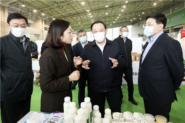 閆劍波參觀威海市第五屆知名農(nóng)產(chǎn)品展暨第十二屆蘋果擂臺(tái)賽
