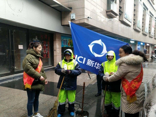 ????2019年1月9日,常州市天氣驟冷,氣溫只有1-3度,還有中等強度的雨夾雪。這時人們都盡量減少外出,可我們最可愛的城市清潔師仍然要堅守工作崗位,進行長時間的戶外打掃。新華保險常州中心支公司員工冒著雨雪給南大街附近的的環衛工人送去一杯杯熱奶茶,讓奶茶溫暖環衛工人的身心。環衛工人們感受到新華人暖暖的愛心,連聲道謝!