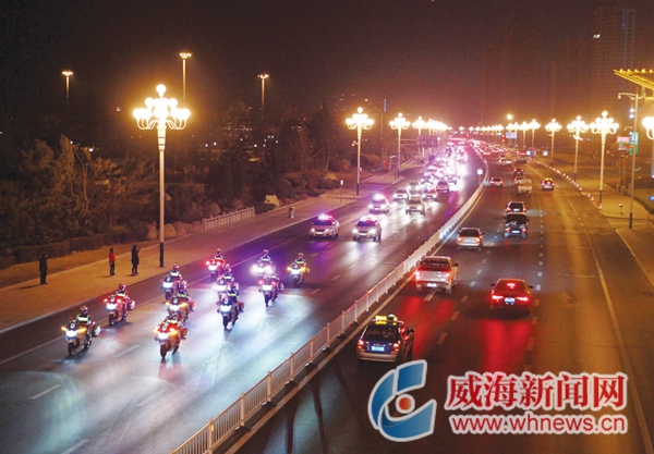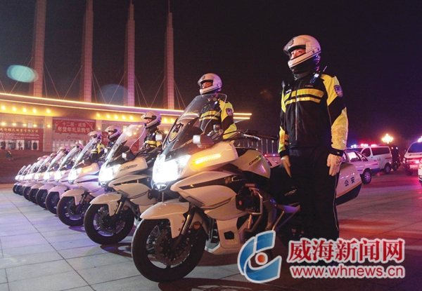 ????當晚6時許,市公安局特巡警、交警、派出所等警種人員及所屬車輛、市消防救援支隊所屬人員車輛在威海國際展覽中心室外廣場完成集結,隊列嚴整,全市禁放煙花爆竹“警燈閃爍”工程正式啟動。