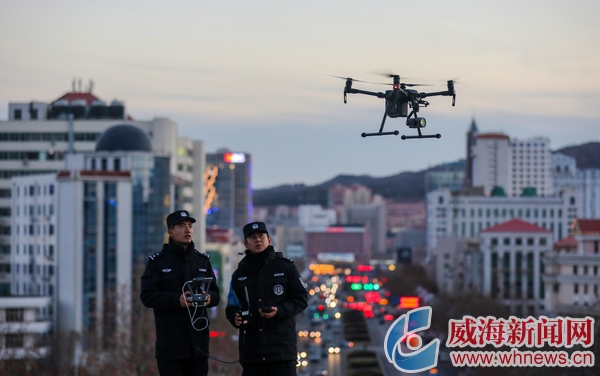 市公安局特巡警支隊民警正在操控無人機,利用“天眼”監(jiān)控市區(qū)治安狀況。孫大偉 攝