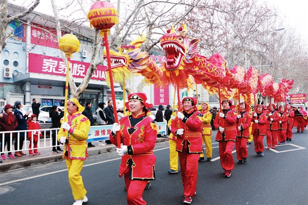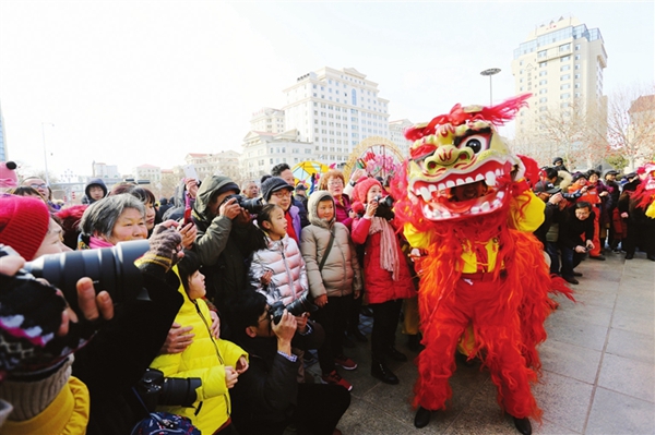 ????鑼鼓聲聲鬧新春。喜慶的龍獅舞起來、歡快的秧歌扭起來,劃旱船、扇子舞、耍毛驢等獨具特色的民俗表演,或喜慶或詼諧,讓市民和游客在大飽眼福的同時,也近距離感受到膠東傳統文化的魅力。