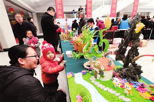 ????在榮成博物館及文化產品展覽中心,以“美麗非遺迎新春”為主題,為市民和游客送上了異彩紛呈的非物質文化遺產展演、展示活動。面花、面塑、糖畫、草編、剪紙等技藝的傳承人,分別于兩大展館攜精美作品閃亮登場,一幅幅非遺作品栩栩如生,吸引了眾多群眾觀賞。傳承人還以現場表演的方式,向廣大市民展示了流傳于榮成民間的古老手工技藝,陳氏太極的表演更是博得滿堂喝彩。少兒書畫、泥塑、面塑表演、糖畫制作表演、剪紙表演以及非遺作品愛心義賣等活動吸引了不少市民圍觀。桌子上擺滿了各種形態的面塑小人,在面塑藝人手里,普通的面團仿佛被賦予了神奇的魔法,變幻出惟妙惟肖的形象,高超的技藝和栩栩如生的形象讓人百看不厭,寒冷的冬日里透出了高雅的“年味兒”。活動所得部分善款,將用于捐助貧困學生。