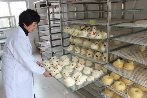 一個多小時過去,第一爐花餑餑出鍋了,有的雪白,是精面粉做的,精巧喜人;嬌黃的是豆面、玉米面摻著做的,適合老年人實用……“咱花餑餑要討人喜歡,就是要不斷學習、不斷創新,只要產品巧又香,就不愁銷!”