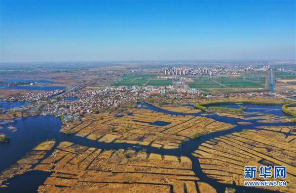 這是3月31日無人機拍攝的雄安新區白洋淀。新華社記者邢廣利攝