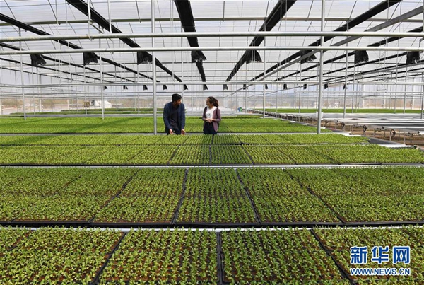 ????4月8日,兩名管理人員在云南彌勒市朋普鎮慶來村無土蔬菜種植基地查看幼苗。云南省紅河哈尼族彝族自治州彌勒市大力發展高原特色蔬菜種植,2018年全市蔬菜種植面積達25.84萬畝,產品暢銷多個省市,帶動農民增收致富。2019年第一季度,彌勒市種植各種時鮮蔬菜已達12.51萬畝。 新華社記者 楊宗友 攝