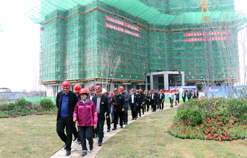 ????南京明月集團、萬恒公司相關領導與施工合作單位負責人、項目經(jīng)理近60多人首先參觀了那香海?度假花園7#樣板工程,親身了解體驗樣板工程的工程質量、現(xiàn)場環(huán)境、內部結構、施工進度等,以樣板典范為對標,學習創(chuàng)新施工管理模式與工程建設質量,營造爭先創(chuàng)優(yōu),比學趕超的優(yōu)良施工氛圍。
