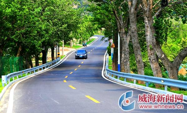 6月17日,在環翠區溫泉鎮,進出村的車輛正行駛在嶄新的東西崮連村公路上。據悉,該路段投資110余萬元改造建設,長1100米,5月初剛剛通車。
