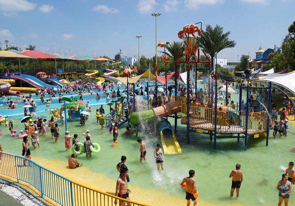 水上樂園,歡笑聲中度時光。激流沖浪,滔滔水浪拍走炎熱;手撥清泉,點點水花沁入心脾。水幕在陽光下折射七彩光芒,正如水中嬉鬧的人們愉悅的心情。水上樂園,為夏日添彩。