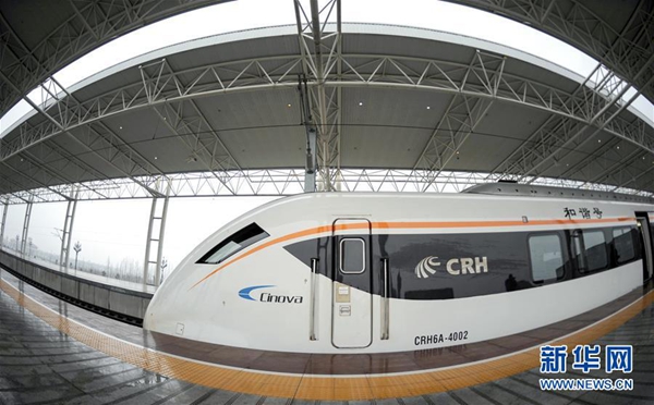 一列城際動車??吭谒拇ǘ冀哒荆?014年2月12日攝)。新華社記者薛玉斌攝