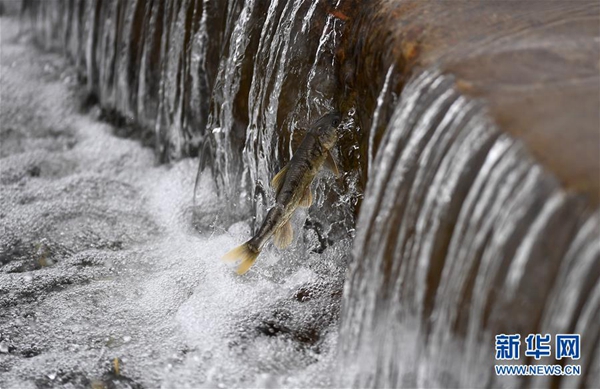 在青海省海北藏族自治州剛察縣,一條湟魚在沙柳河中洄游(7月6日攝)。新華社記者 張宏祥 攝