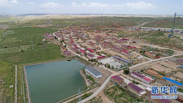 ????寧夏固海揚水工程緩解了中部干旱區吃水難的問題,這是中寧縣喊叫水鄉喊叫水村建設的蓄水池(2019年7月23日無人機拍攝)。 新華社記者 馮開華 攝