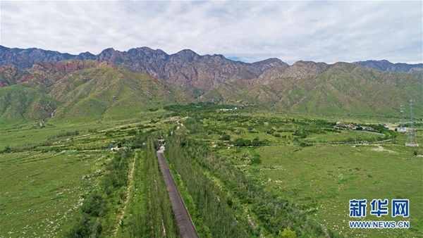 綠意盎然的賀蘭山(2018年9月4日無人機拍攝)。 新華社記者 王鵬 攝